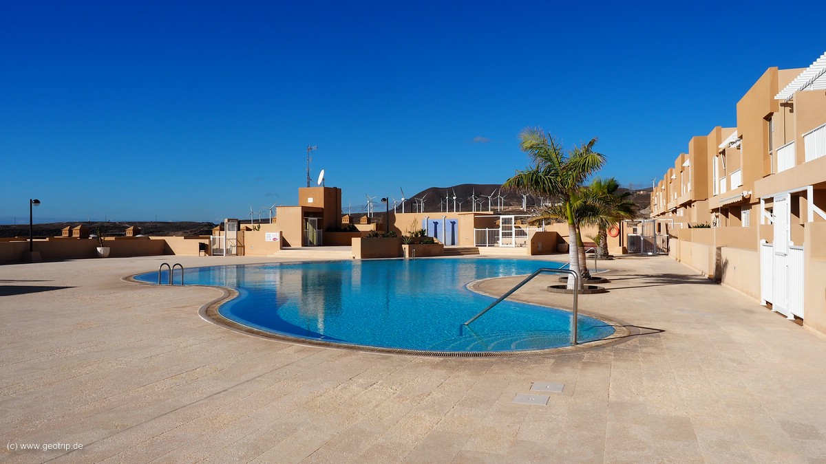 Eine halbe Stunde später sitzen wir schon im Ferienappartment. Tochter ist begeistert. Modern, klare Formen, zwei schicke Pools, ein paar Palmen. Zwar ein paar Meter vom Meer, aber wir haben sie mitaussuchen lassen, lohnt sich für den Urlaubsfrieden.