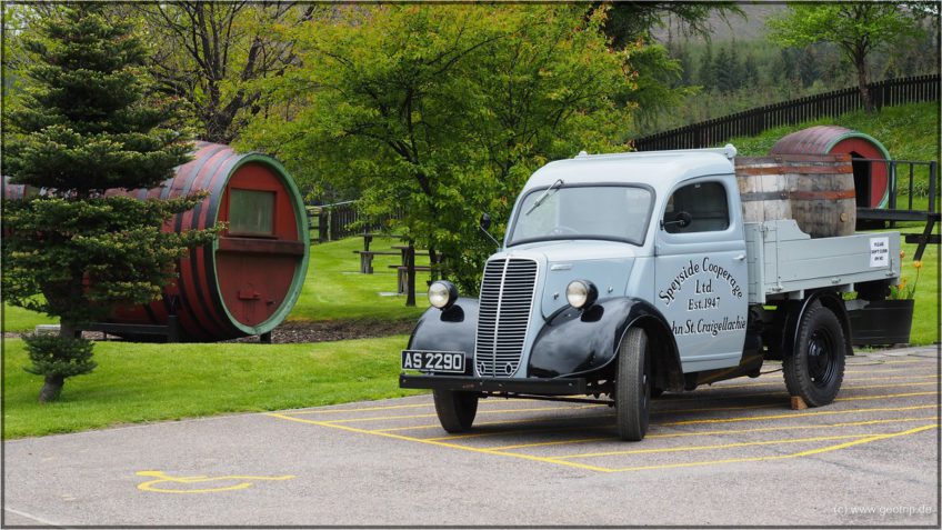 Pünktlich stehen wir auf der Matte. Ein schönes Besucherzentrum, na eher Häuschen haben sie hier bei Aberlour. Und eine hochmoderne Kasse, die gleich die Bezahlung verweigert. Es gelingt aber dann doch. Leider ist Sti...