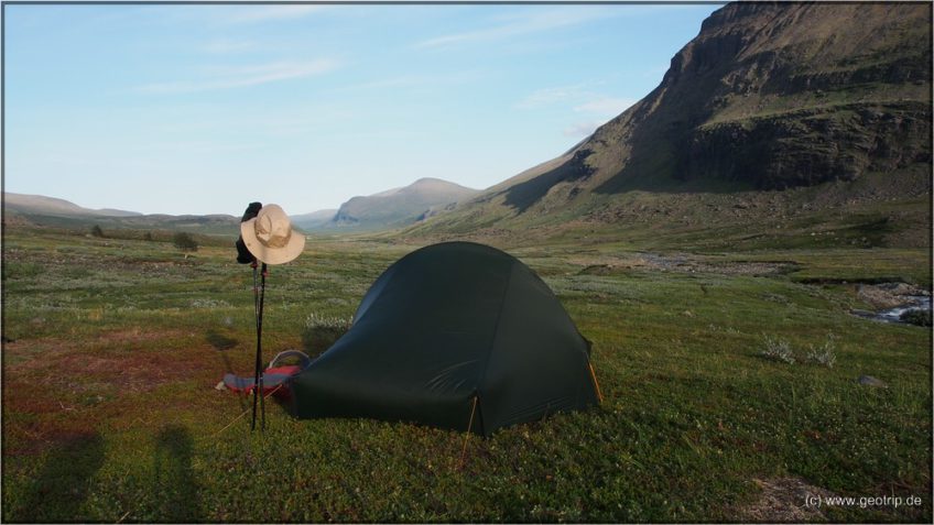 Wir werden ständig von Wolken verfolgt, laufen aber tatsächlich fast die ganze Zeit im schönen Wetter. Der Anstieg zum Tjäktapass den wir heute vor uns haben ist aber nicht so gewaltig, wie es von der Ferne den Ansch...