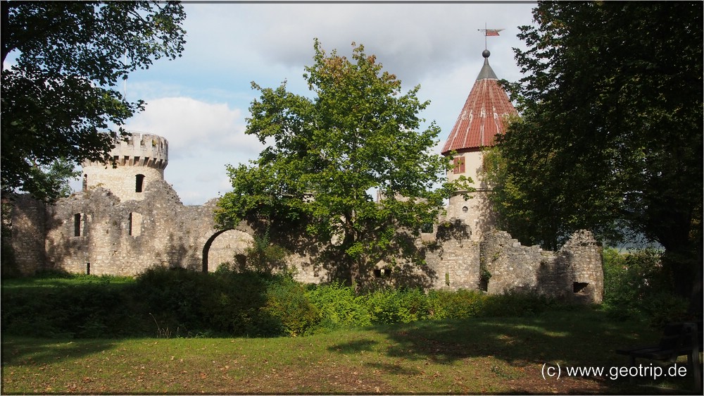 Wildenstein bietet einen schrägen Parkplatz, jede Menge Trubel aber auch einen Doppelburggraben und einen schönen Innenhof. Und darin ein openair Grillstand mit einem Gericht für jeden: Forelle für die Dame, Wurst für den Mann und Pommes für den Nachwuchs. Dermaßen gestärkt besuchen wir auch noch den nahe gelegenen Aussichtspunkt. Dieser bietet die inzwischen bekannte Szenerie, immerhin aus einer anderen Perspektive als heute morgen.