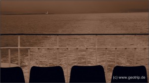 Beim bücken übern Rucksack wird mir bei dem Seegang dann auch schlecht. Schnell packen wir wieder zusammen, und ab gehts wieder rauf, weg von den Essensgerüchen nach Bacon und Wurst. Oben gehs eigentlich wieder, Mara liegt platt auf dem Polster, als sich nebenan die ersten übergeben. Na super. Zum Glück kommt gleich der Stuart und wischt auf. Noch 1,5 Stunden, oh je. Da Mara aber vor sich hin dämmert und keine Aufmerksamkeit beansprucht wie sonst, können wir auch vor uns hindösen und die Zeit geht schnell rum.
