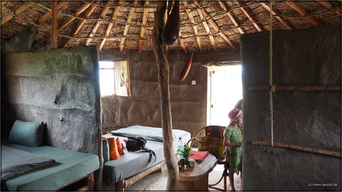 Wir übernachten also in Masaihütten. Natürlich deutlich komfortabler als das Original mit Toilette und Dusche und richtigen Betten.