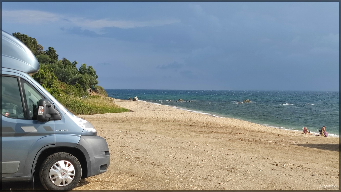 Die Zeit ist jetzt nicht so dramatisch, denn wir sitzen die meiste davon unterm Sonnenschirm. Und als der Fisch dann kommt, ist es ne wirklich leckere, ganze Dorade. Aber 40 nur für den Fisch ist dann heftig. Maras und meine Souflakis kosten zum Vergleich 13 Euro, zusammen!